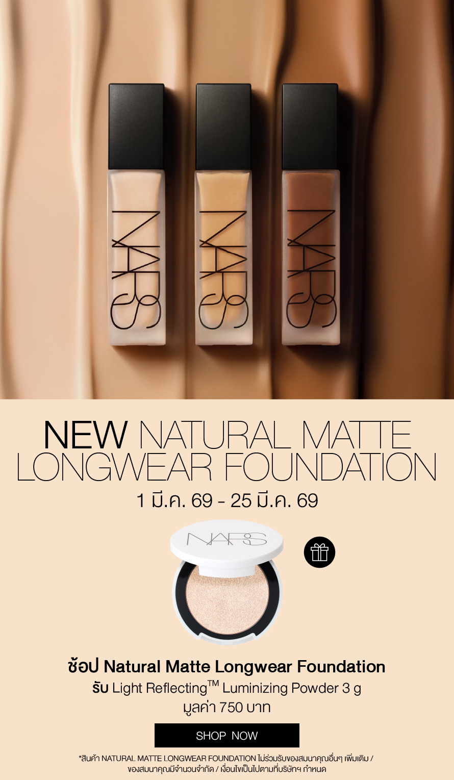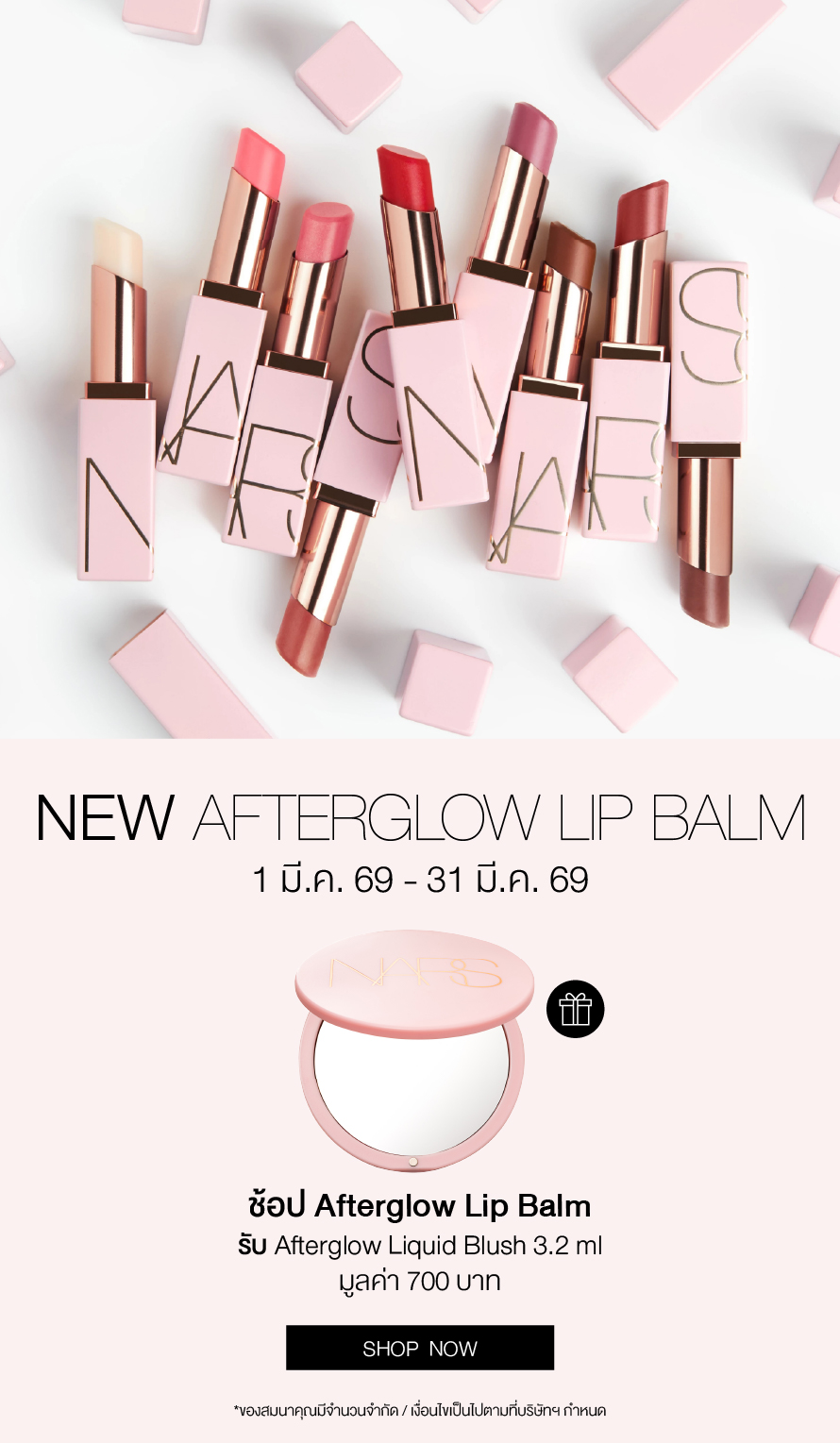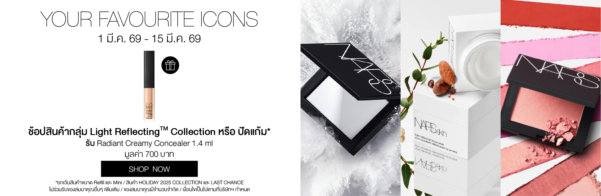 International Women's Day Celebration ทุกคำสั่งซื้อรับ Mini Blush 2.5g มูลค่า 590.- ช้อป Light Reflecting™ Collection รุ่นใดก็ได้ รับฟรี Mini Radiant Creamy Concealer 1.4 ml มูลค่า 700.- ช้อป Natural Matte Longwear Foundation รับฟรี Light Reflecting Luminizing Powder 3 g มูลค่า 750.- ลูกค้าใหม่ กรอกโค้ด WELCOMENARS รับส่วนลด 15% (เมื่อช้อปครั้งแรก) ช้อป Afterglow Lip Balm รุ่นใหม่ รับฟรี Afterglow Mirror มูลค่า 700.- ช้อปครบ 2,500.- รับของสมนาคุณ มูลค่ารวม 1,250.- ช้อปครบ 3,000.- รับเพิ่ม Pink Pouch มูลค่า 1,200.- Last Chance Up to 30% off.