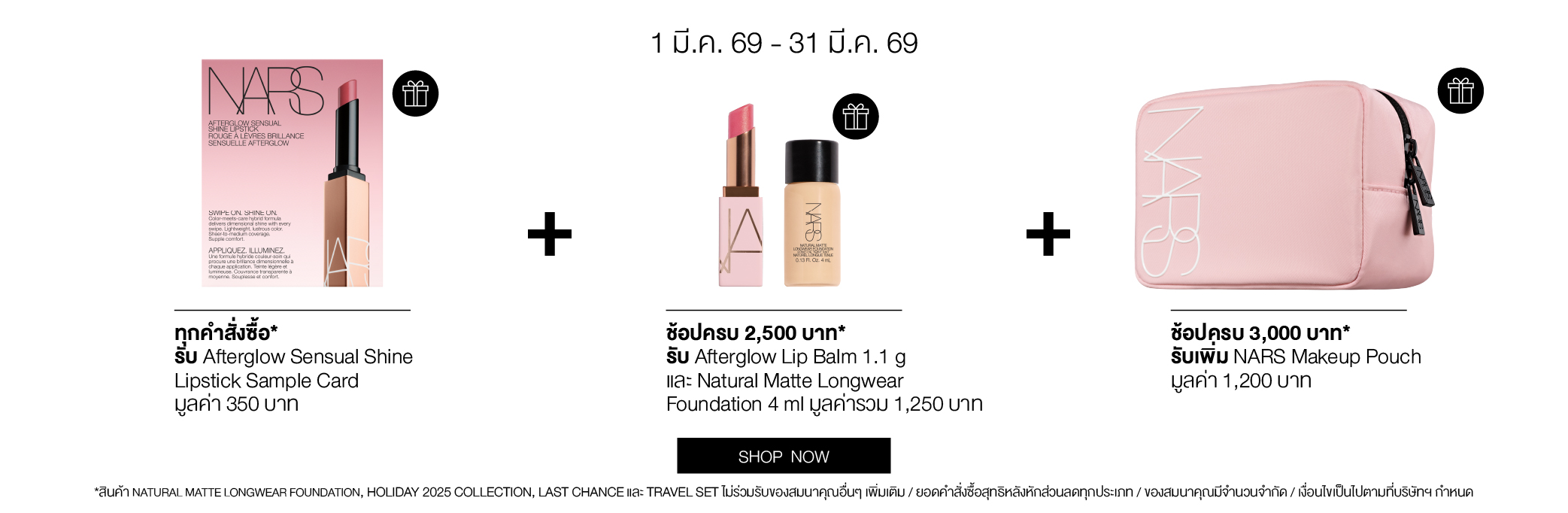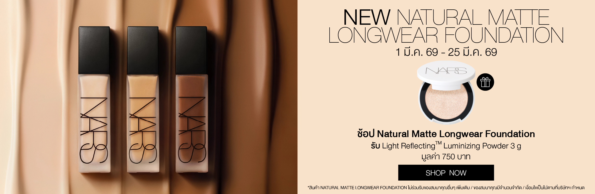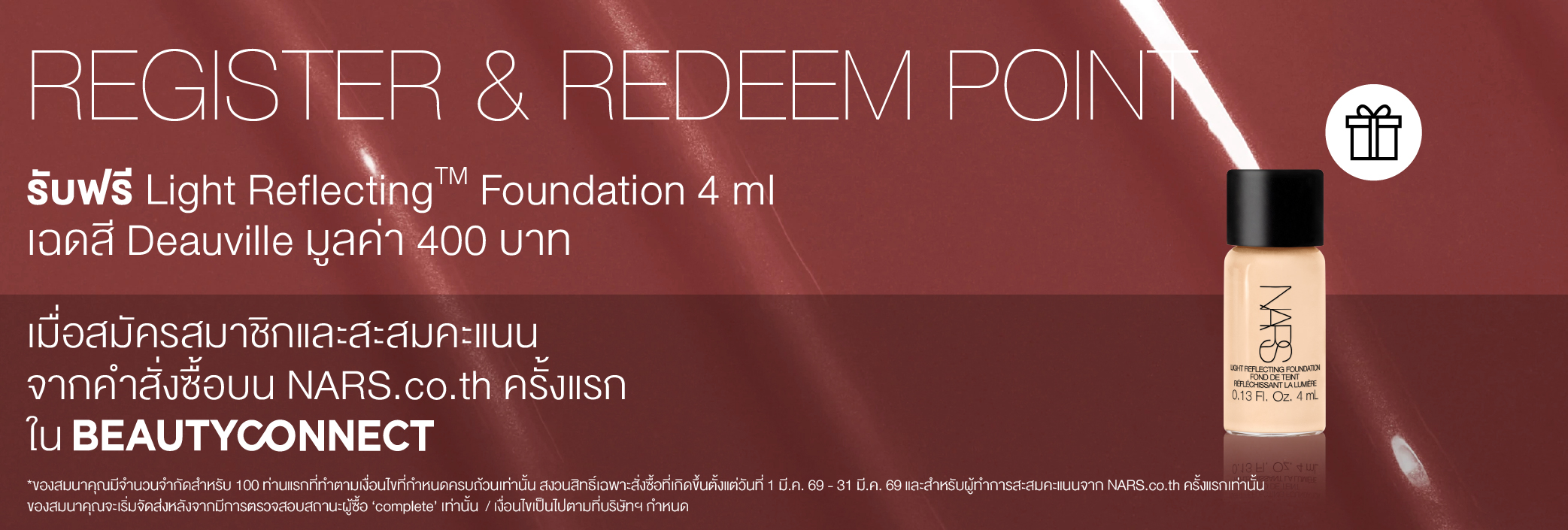 International Women's Day Celebration ทุกคำสั่งซื้อรับ Mini Blush 2.5g มูลค่า 590.- ช้อป Light Reflecting™ Collection รุ่นใดก็ได้ รับฟรี Mini Radiant Creamy Concealer 1.4 ml มูลค่า 700.- ช้อป Natural Matte Longwear Foundation รับฟรี Light Reflecting Luminizing Powder 3 g มูลค่า 750.- ลูกค้าใหม่ กรอกโค้ด WELCOMENARS รับส่วนลด 15% (เมื่อช้อปครั้งแรก) ช้อป Afterglow Lip Balm รุ่นใหม่ รับฟรี Afterglow Mirror มูลค่า 700.- ช้อปครบ 2,500.- รับของสมนาคุณ มูลค่ารวม 1,250.- ช้อปครบ 3,000.- รับเพิ่ม Pink Pouch มูลค่า 1,200.- Last Chance Up to 30% off.