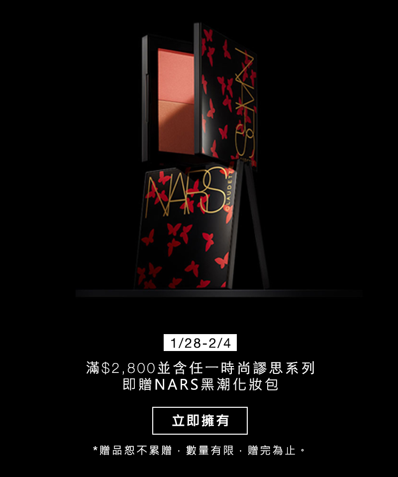 滿$2,800並含任一時尚謬思系列即贈NARS黑潮化妝包